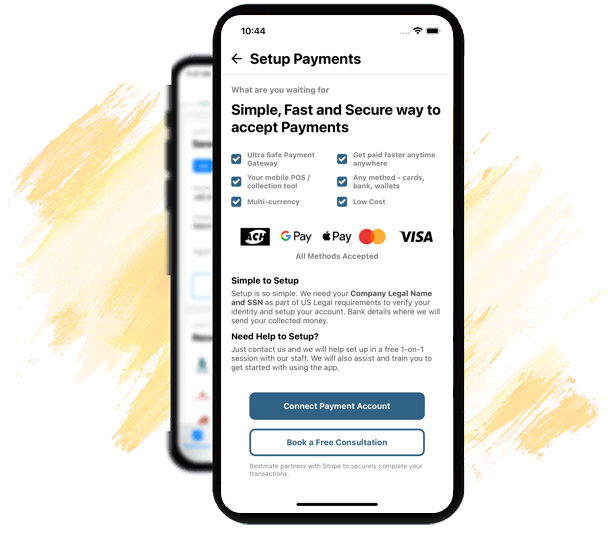 Send & Receive Text Messages to Clients (up to 200/mo)Team Members (1-2 members)Custom Branded WebsiteOnline Booking PortalImages & Attachments for Bookings, Invoices, EstimatesRecurring Invoices & SchedulesExpense ManagementOnline Estimate Accept & e-SignAutomatic Invoice ReminderAutomated Booking Notifications & RemindersAutomated Estimate FollowupZapier IntegrationImport Your Data to BestmateLive 1-on-1 Support -